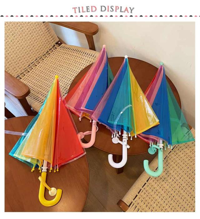 レインボー ビニール傘 キッズ傘 虹色 グラスファイバー 子供傘 おしゃれ 透明傘 男の子 女の子 8本骨 耐風 撥水 梅雨対策 透明傘 可愛い 軽量 幼稚園 保育園 プレゼント