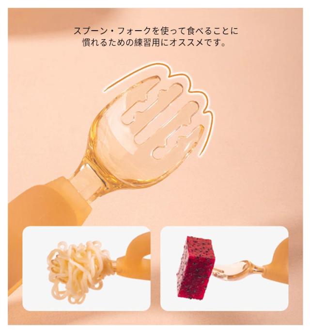 | 赤ちゃんからキッズまで握りやすいスプーンとフォーク、収納ケースの3点セット。 食用グレードシリコン製で赤ちゃんにも安心してご使用いただけます 口当たりの良い滑らかなスプーンは、子どものひと口に調度よい量をすくいあげられる大きさ◎ スプーン・フォークを使って食べることに慣れるための練習用にオススメです。 出産のお祝いにも喜ばれる事間違いなし! | |