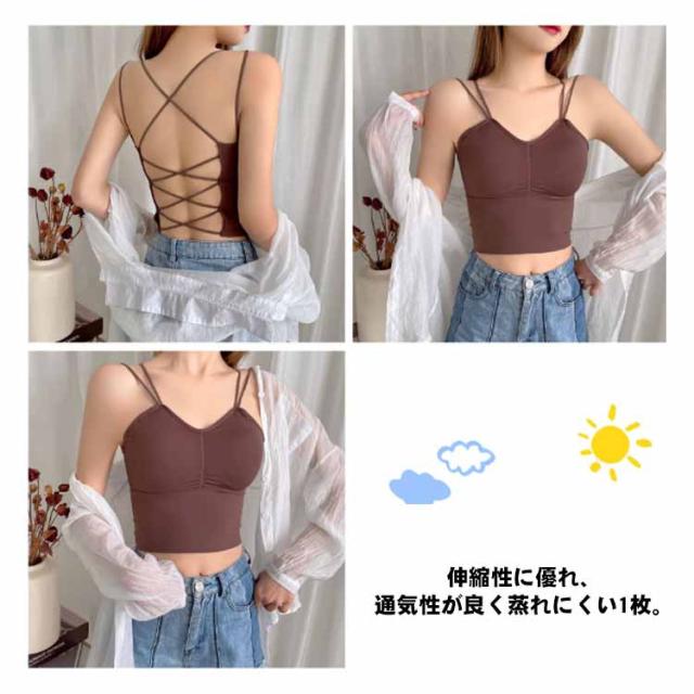 バッククロス バックオープン キャミ カップ付き 背中見せ 背中あき ブラ 開き インナー ノンワイヤー 背中 ブラトップ タンクトップ 背中あき レディース 春夏 ハーフトップ 見せブラ かわいい ブラジャー キャミソール