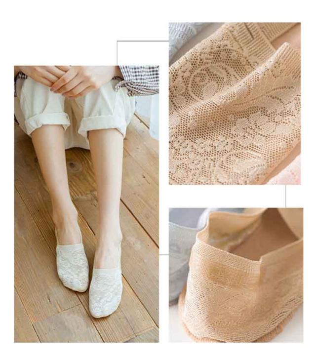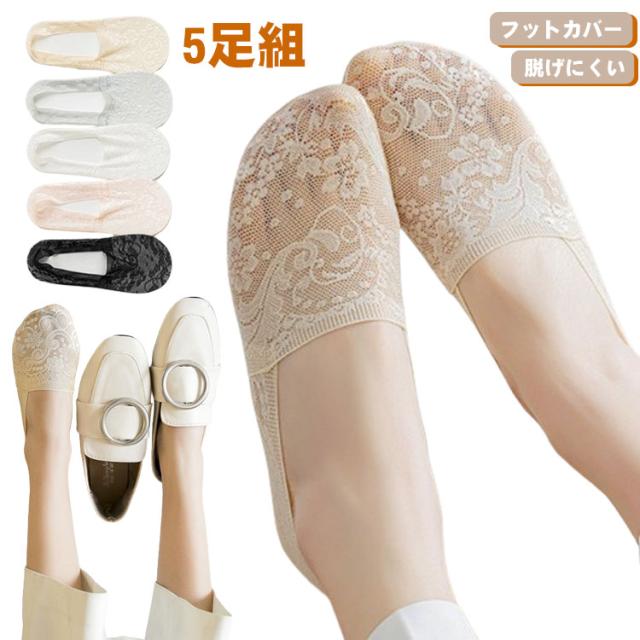 靴下 脱げない 極薄 春 レディース ソックス 薄手 スリッポン 滑り止め付き 5足セット ストッキング くつ下 シースルー ショート 美脚 パンプス用 花柄レース フットカバー 夏 くつした 大人可愛い 伸縮性 5足セット