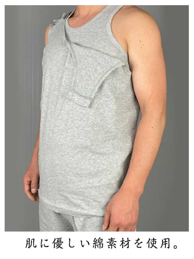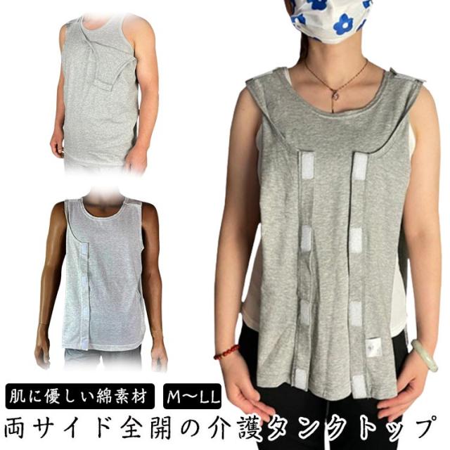 | 【両サイド全開の介護タンクトップ】 【肌に優しい綿素材】【M〜LL】 男性も女性も着やすいシンプルな介護服です。 肌に優しい綿素材を使用。 両サイドがマジックテープで、開け閉めが簡単です。 介護や入院時などにおすすめです。 | |