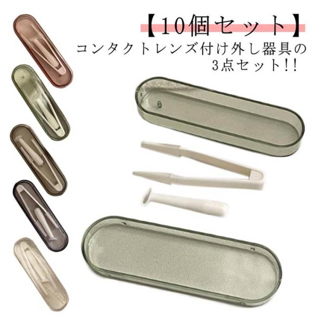 | コンタクトレンズ付け外し器具の3点セット!! 【10個セット】 指を使わずにコンタクトレンズのつけはずしができます!指先の皮脂汚れや化粧汚れがレンズに付かないので清潔・快適 指より細くピンポイントで掴めるから、これがあれば今まで煩わしかったレンズの着脱がとっても簡単!恐る恐るやっていた付け外しがラク〜に手早くできるようになります♪ 収納ケース付きで携帯に便利!超コンパクトだから場所を取りません♪ 清潔な状態に保つため、使用後は水洗いをして、自然乾燥させてください。 | |