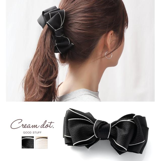 大人っぽいモノトーンカラーのリボンバナナクリップ。高級感あるシアサッカー生地と、バイカラーで縁どったデザインが華やかで涼しげなアクセントを添えてくれます。シンプルだからデイリーに取り入れやすいアイテムです。