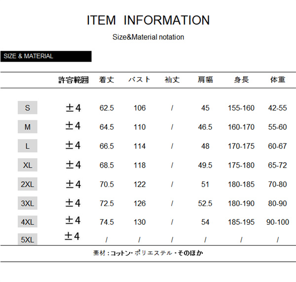 サイズ:/S/M/L/XL/2XL/3XL/4XL