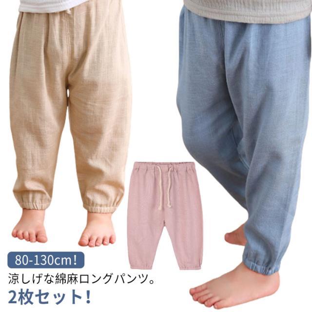 ズボン ベビー服 女の子 男の子 長ズボン 薄手 麻 綿麻 ウエスト紐 リネン 虫よけ ベビー服 春夏 子供服 ルームウェア リネン キッズ 2枚セット パンツ 夏 涼しい ゆったり 2枚セット おしゃれ 可愛い ウェストゴム 部屋着 無地 80 90 100 110 120 130