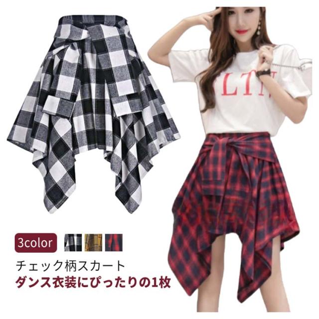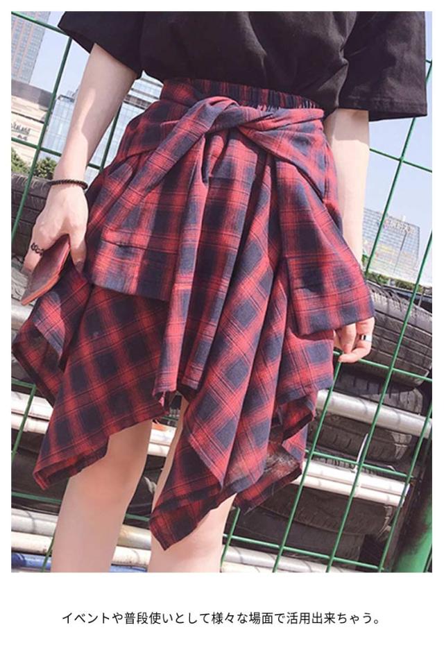 スカート ボトムス リボン お出掛け シャツ腰巻き風スカート チェック チェック柄 ミニスカート 風 ダンス チェックシャツ ミニ スカート スカート レディース スカート 前短め 普段着 ダンススカート チア チアリーダー 衣装 デート 可愛い イベント