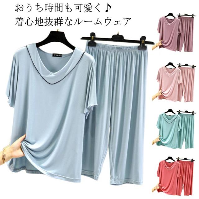 | おうち時間も可愛く♪着心地抜群なルームウェア 夏を涼しく快適に過ごせる なめらかな肌触りノンストレスで、気分もハッピーになるルームウェア 伸縮性に優れたモダール生地 ボトムのウエストはゴム仕様でストレスなし | |