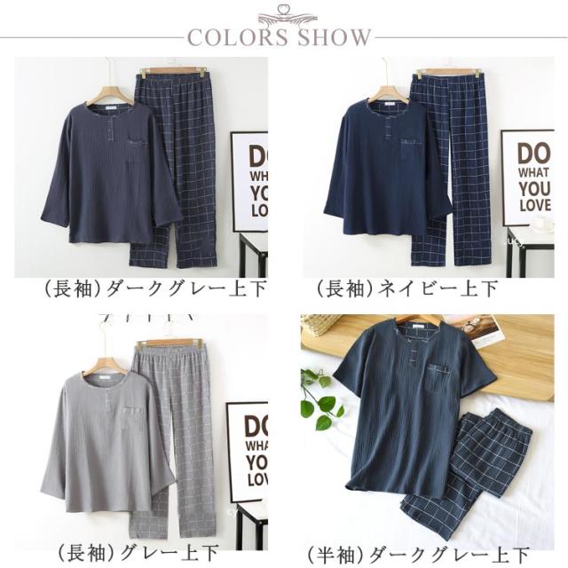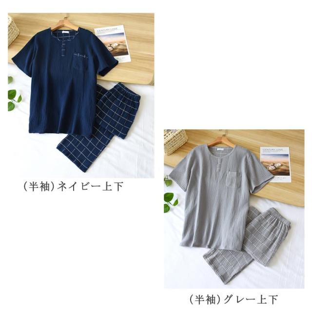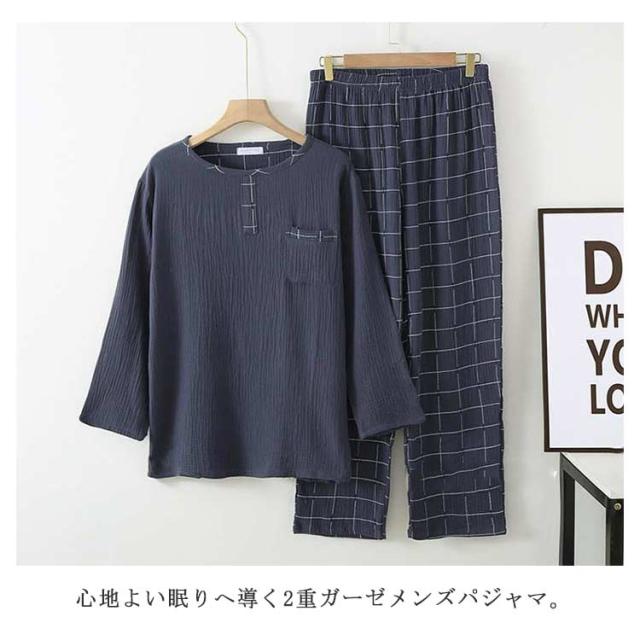 上下セット パジャマ 綿 コットン メンズ 父の日 ダブルガーゼ 甚平 2重ガーゼ ルームウェア 半袖 ギフト 部屋着 ナイトウェア 長袖 紳士パジャマ ギフト サウナ サウナ上がり 父の日 かぶるだけ 春 夏