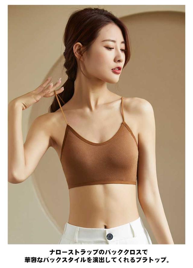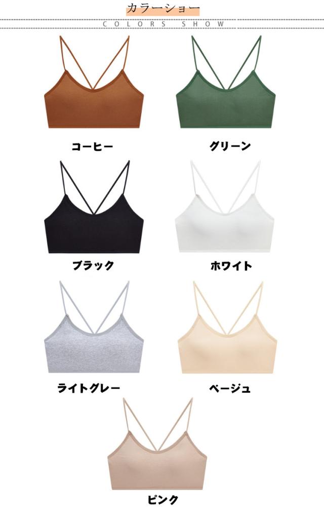 | 【背中開き】【全7色】【S M L XL】 ナローストラップのバッククロスで 華奢なバックスタイルを演出してくれるブラトップ。 柔らかな綿混素材が抜群の肌当たりを実現。 ノンワイヤー、高い伸縮性、程よい締め付け感、圧迫感ゼロ、快適な着け心地を大切なバストに届けます。 背中開きトップスの見せブラとしても最適。 | |