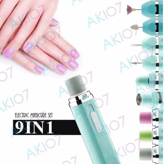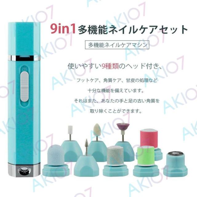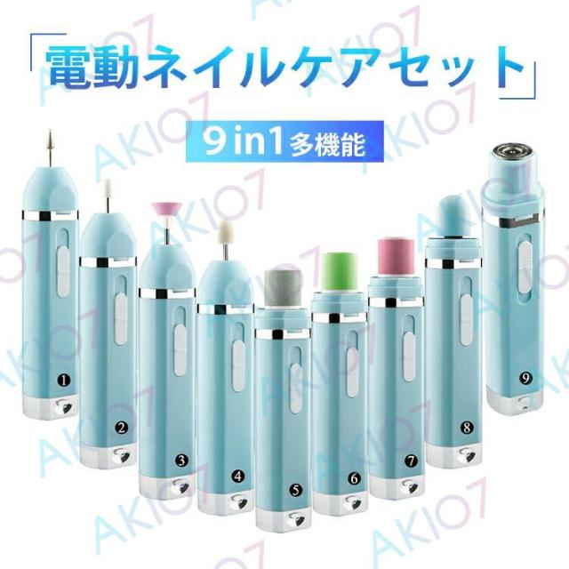 【乾電池式】ネイルケア 電動 ネイルケアセット 9in1 ネイルケアキット 多機能 セルフネイルマシン 電池式 電動爪やすり 爪磨き 爪ヤスリ 爪削り 甘皮処理 角質除去