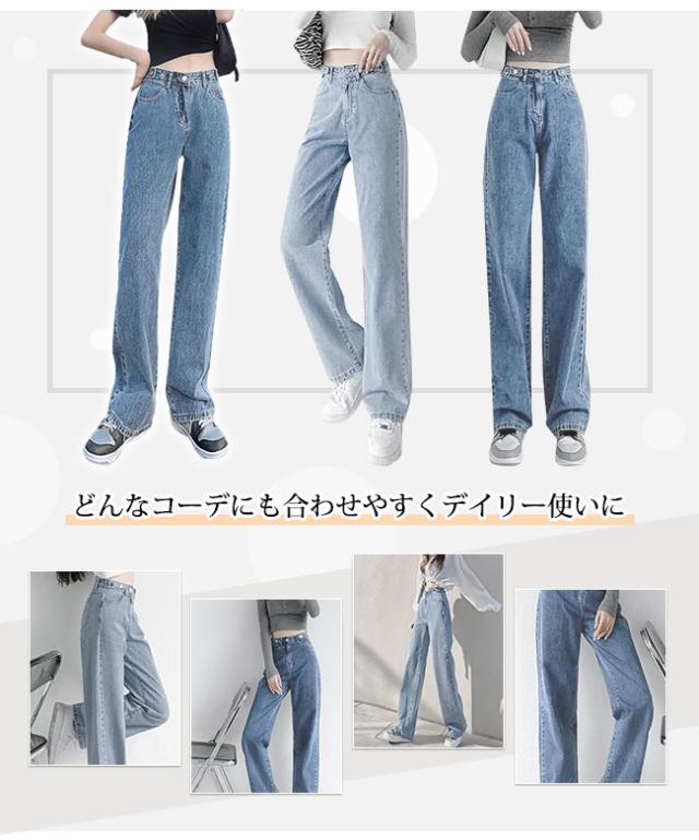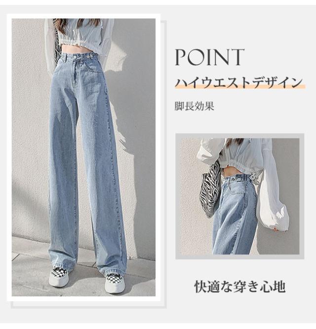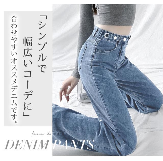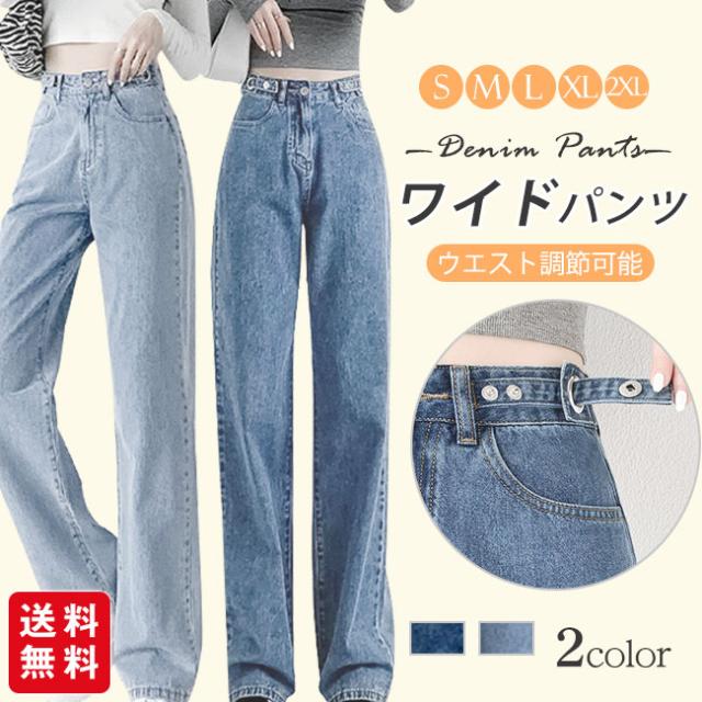 ワイドパンツ デニム ハイウエスト ウエスト調節可能 レディース ジーンズ デニムパンツ 春夏 きれいめパンツ 美脚 大きいサイズ 脚長効果 着痩せ おしゃれ