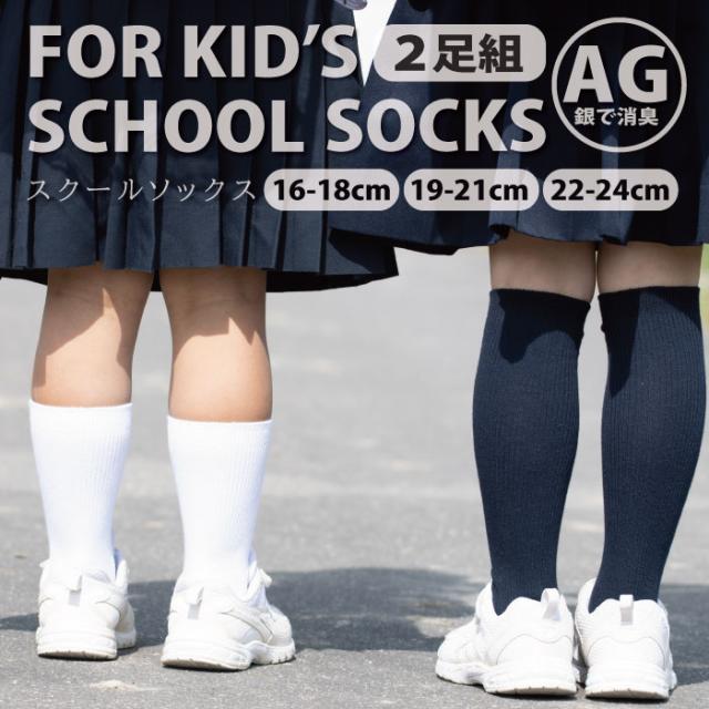 2足組!Ag加工リブスクールソックス 各サイズ各色あります。 消臭の効果が期待できるAg加工。 夏の暑さで汗だくの足元は、においとよごれがいっぱい 汗をかいても臭いにくい! オールシーズン爽やか快適! デリケートなお年ごろのお子様にも安心の銀の力です! |