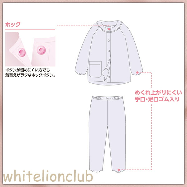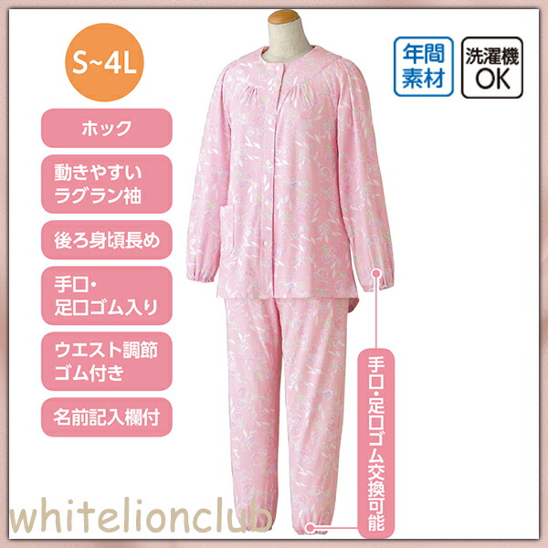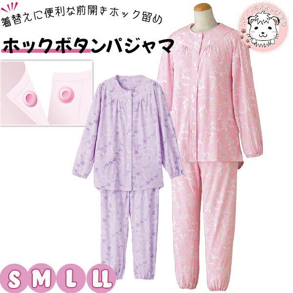 介護 パジャマ レディース ホックパジャマ ラグラン袖 後ろ身頃長め 名前記入欄付き S/M/L/LL | 長袖 前開き 長ズボン 全開パジャマ 介護パジャマ かわいい