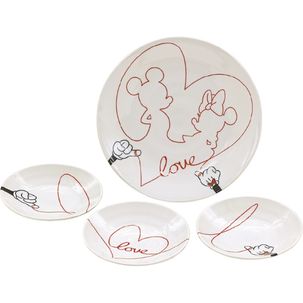 「ラブイズ」は、ミッキーマウスとミニーマウスの左手の薬指を結ぶ赤い糸をテーマにしたテーブルウェアシリーズ。