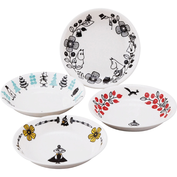 ムーミン谷の仲間たちのイラストが描かれたパスタプレートのセットです。