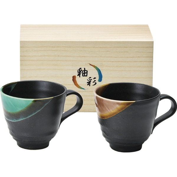 マグカップ ペア タンブラー マグ カップ 日本製 コーヒー 紅茶 お冷 フリーカップ マルチ 酒器 コップ 冷酒 ぐいのみ ジョッキ ビール ハイボール 日本酒 ウイスキー ロック ワイン ギフト プレゼント 誕生日 山勝美濃陶苑 釉彩 マグペア 木箱入 赤/緑