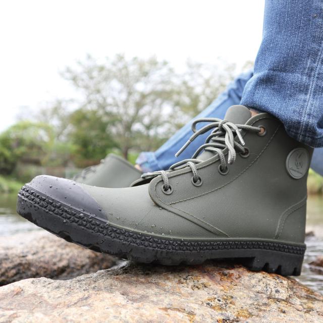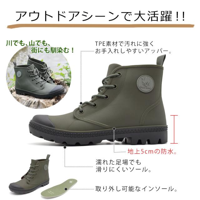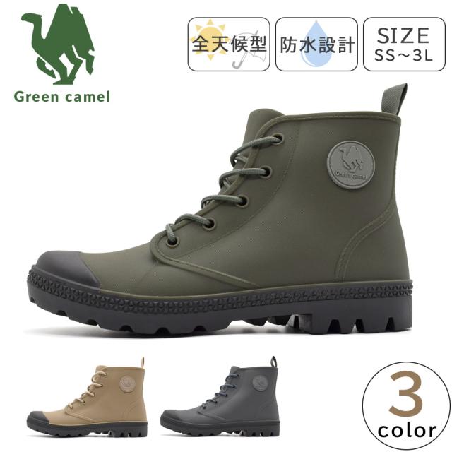 レインブーツ メンズ レディース GC5620 男女兼用 レインシューズ アクティブブーツ 防水 ハイカットスニーカー アウトドア グリーンキャメル 梅雨対策