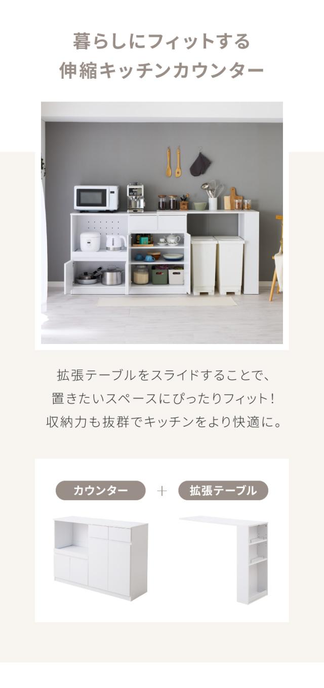 収納・作業スペースが広がる伸縮キッチンカウンター。