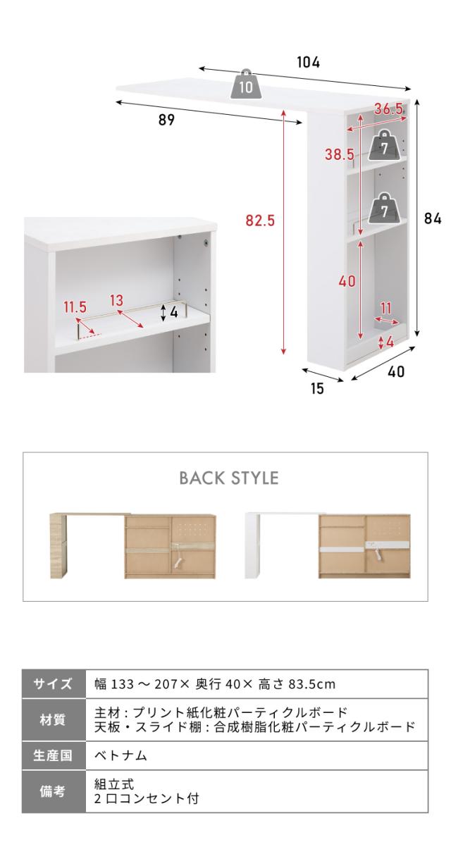 天板・スライド棚:合成樹脂化粧パーティクルボード