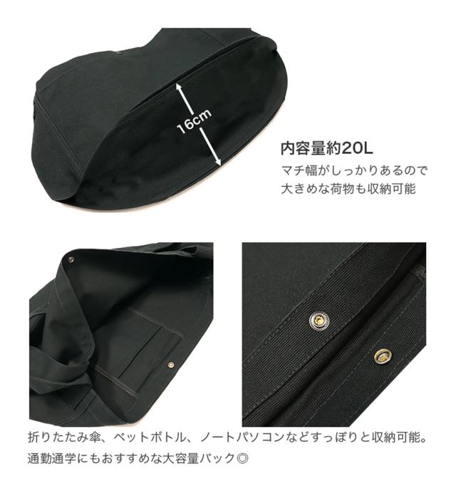 横幅約40cm・高さ約36cm・マチ約16cm・ショルダーストラップ約87cm・内容量約20L