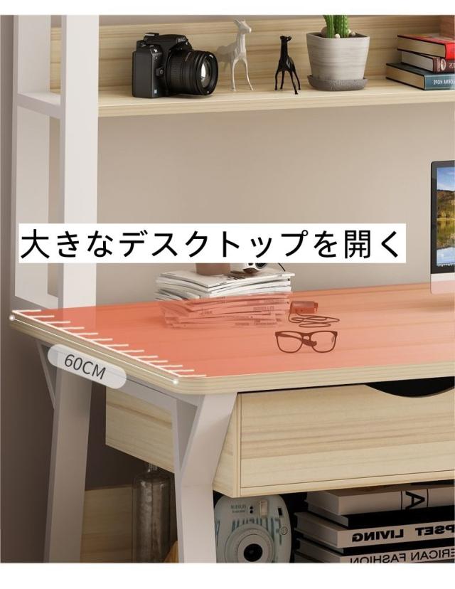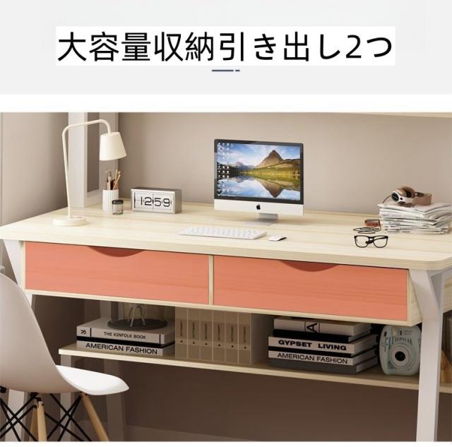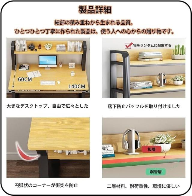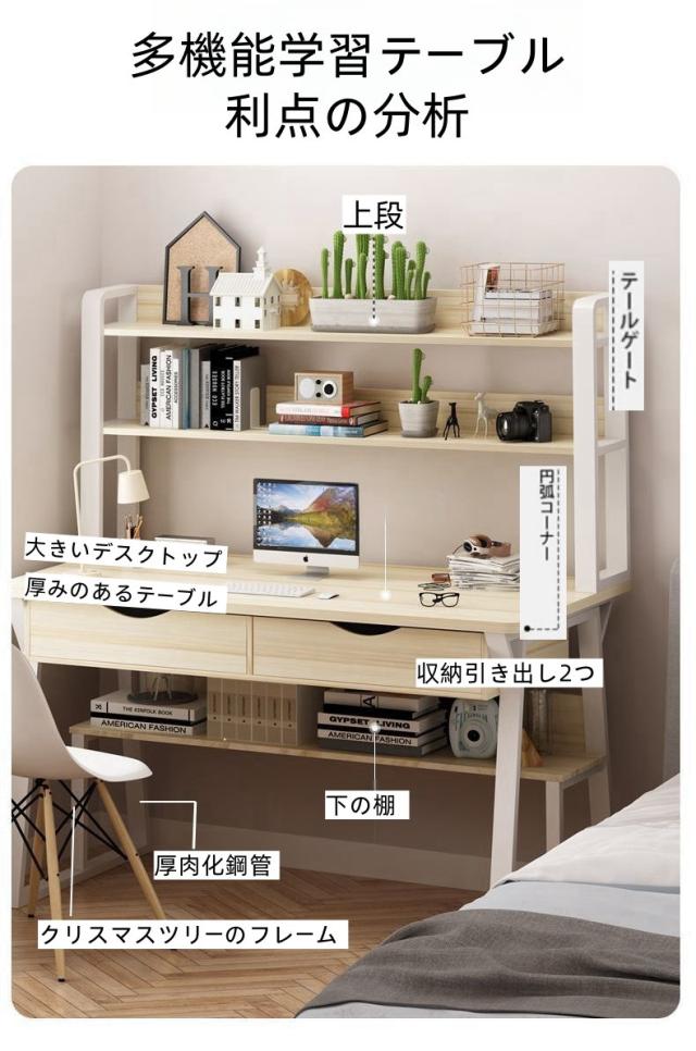 パソコンデスク 学習テーブル デスク テーブル 文房具収納 多機能 安心安全設計 大きなデスクトップ 大容量トレー付き 本棚 多層収納スペース