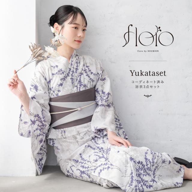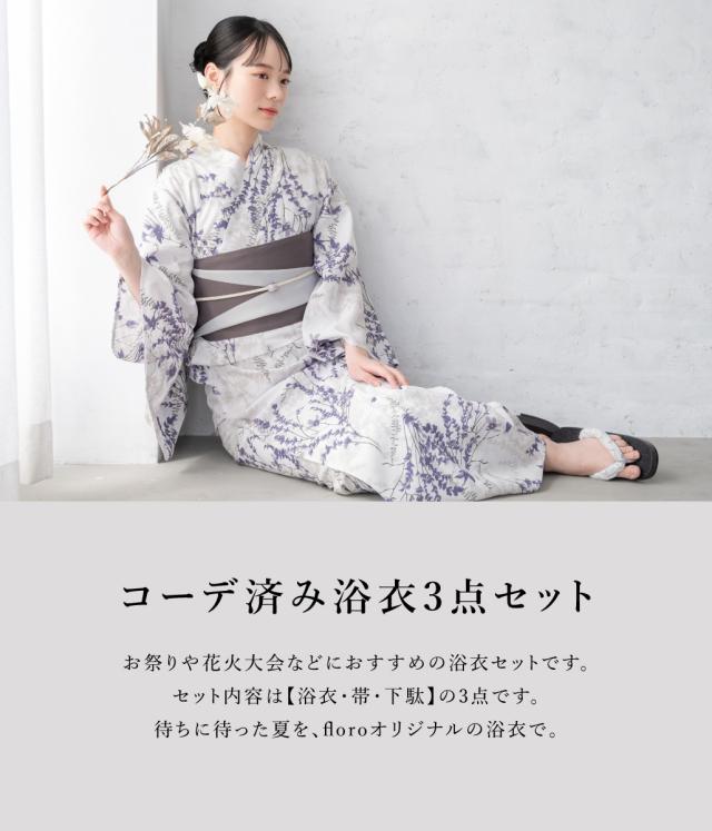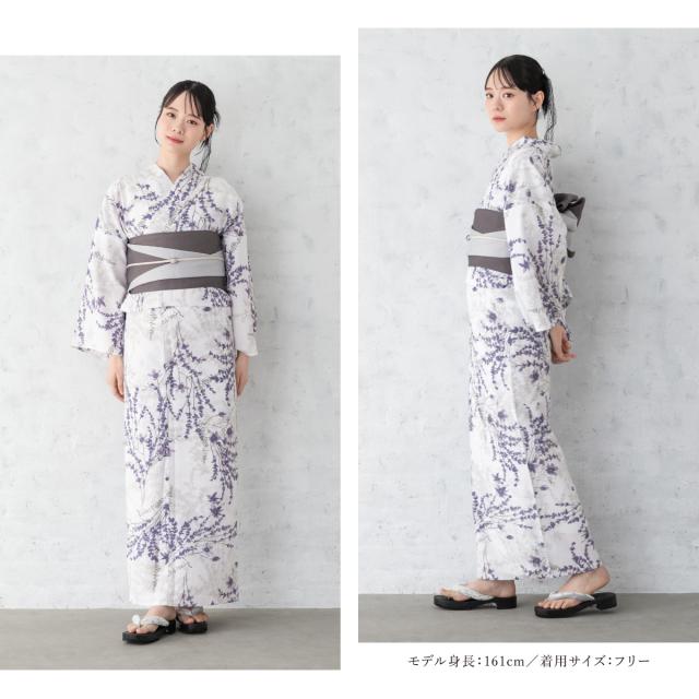 浴衣 セット レディース 浴衣セット 半幅帯 2026 大人 3点セット グレー 花 紫 白 ホワイト ポリエステル Sサイズ フリーサイズ 送料無料