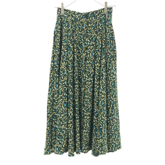 ノーマカマリ 総柄 ロング丈 フレアスカート 9 グリーン Norma Kamali フロントスリット 比翼ボタン レディース