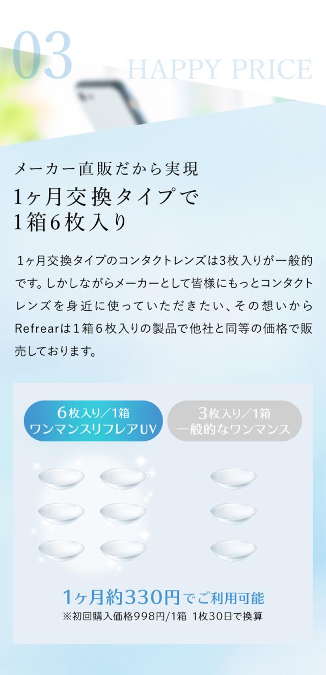 ワンマンスリフレア UV 2箱セット (1箱6枚) UVカット コンタクトレンズ 1month 1ヶ月使い捨て コンタクト refrear フロムアイズ