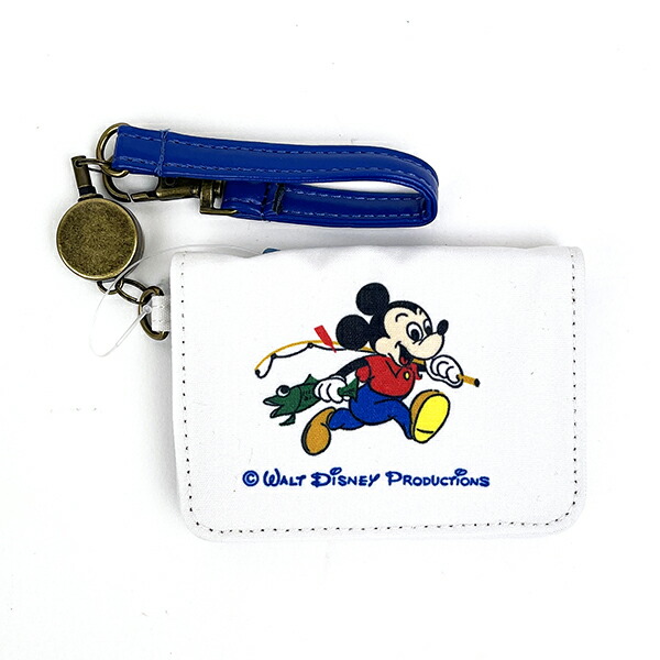 ミッキーの2つ折りの見開きタイプのパスケース。懐かしいデザインのミッキーがかわいい♪リール式なので鞄に付けたまま使えて便利♪通勤通学に◎