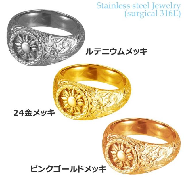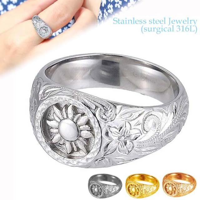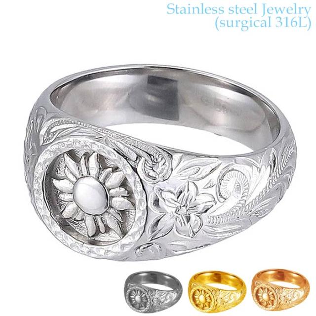 ハワイアンジュエリー サージカル ステンレス アクセサリー 316L シグネット サンモチーフ リング 指輪 7号〜21号 最大幅10mm レディース メンズ 太陽 ハワジュ 金属アレルギーフリー 人気 ギフト 誕生日 クリスマス 記念日 GRSS815
