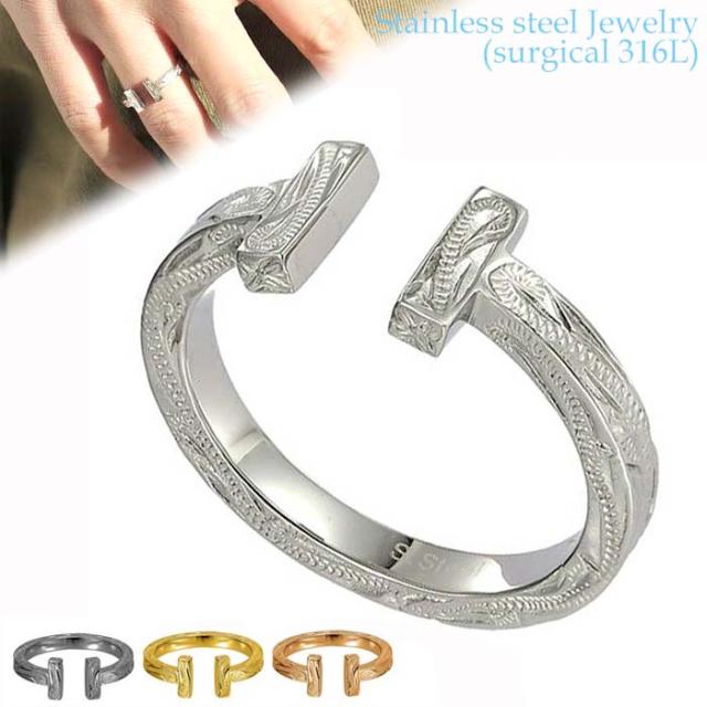 ハワイアンジュエリー サージカル ステンレス アクセサリー 316L スクロール T リング 指輪 7号〜21号 最大幅7.6mm レディース メンズ T字型 ハワジュ 金属アレルギーフリー 人気 ギフト 誕生日 クリスマス 記念日