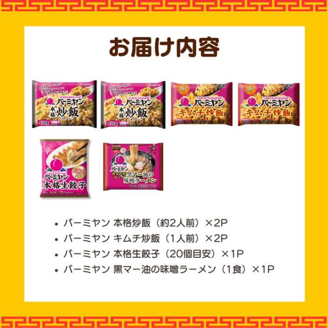 【クーポンで50%OFF!3,980円!】 冷凍食品 惣菜 餃子 / バーミヤン炒飯満腹セット(4種6袋) / ギョーザ ぎょうざ 冷凍餃子 炒飯 キムチ炒飯 チャーハン 中華惣菜 お惣菜 おかず 弁当 フライパン調理 一人暮らし 簡単調理 グルメ ギフト 外食