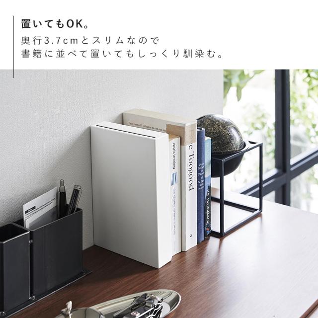 置いても設置でき、奥行3.7cmとスリムなので、ちょっとした書籍のスペースに並べてもしっくり馴染みます。