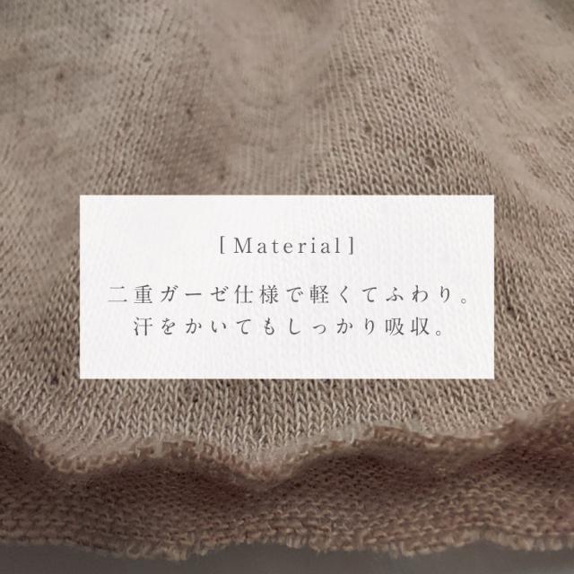 二重ガーゼならではの軽くてやわらかな風合い。汗をかいてもしっかり吸収。快適な着心地でオールシーズン活躍する生地です。