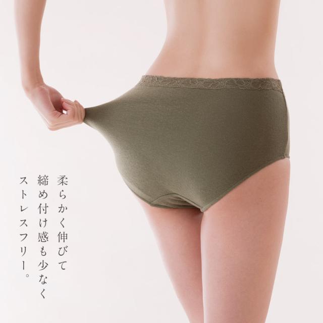 ウエストはゴムを使わずストレッチレースのみで食い込みにくく楽ちん。