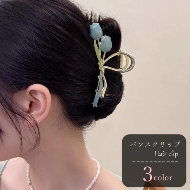 バンスクリップ ヘアクリップ 髪留め レディース 女性 ヘアアクセサリー ファッション雑貨 大きめ チューリップ 花 フラワー