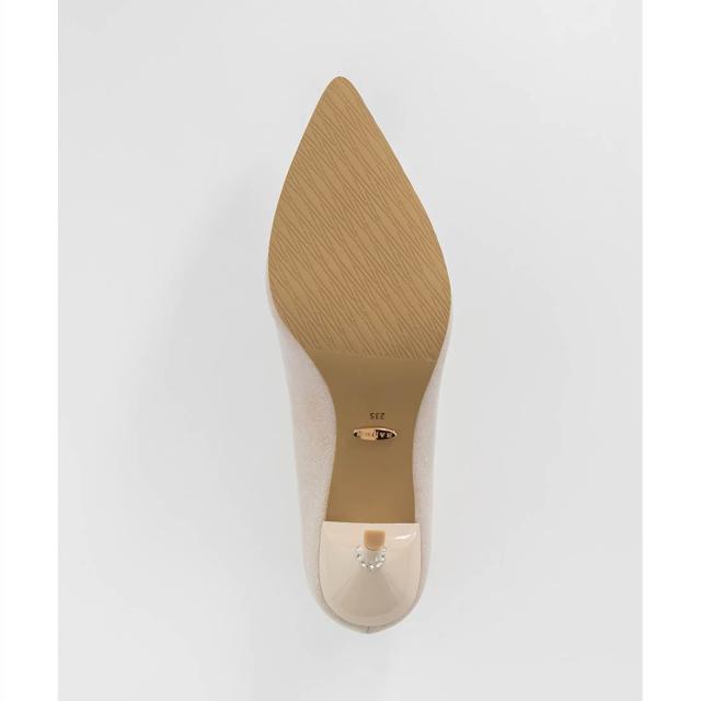 美しいラインのピンヒールには、さりげなくビジューを施し、