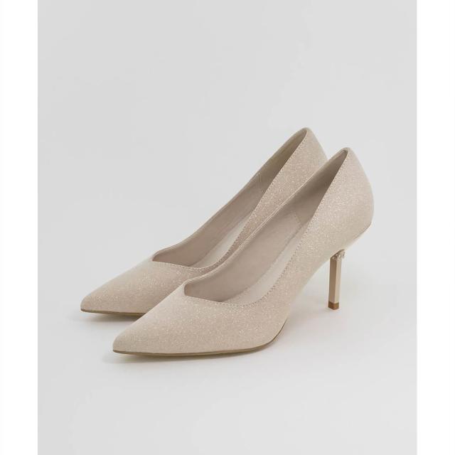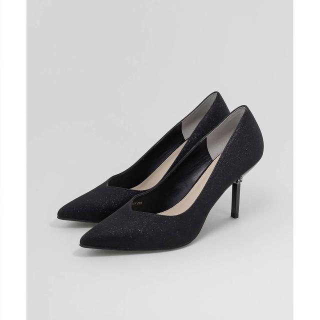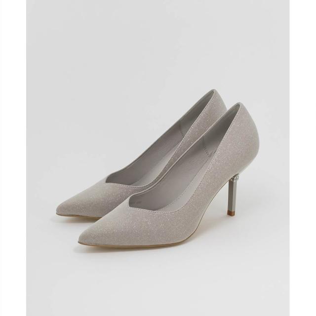 繊細に輝くグリッター生地を使用したパンプス。