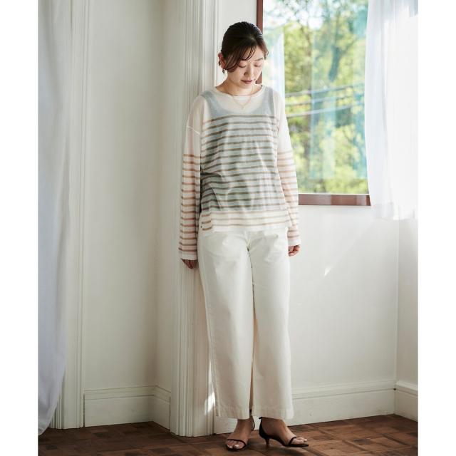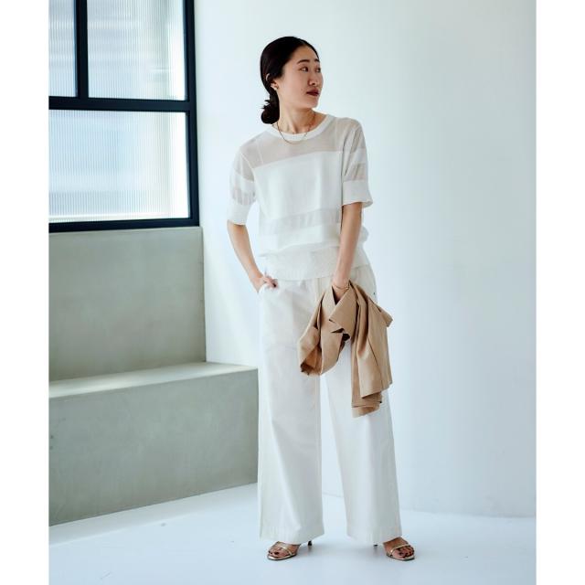 ライトオンスの軽めな素材にすることで、暑い季節でもデイリーに使えるデニムパンツ。薄手の素材で涼しく、ワイドストレートシルエットで体のラインも拾いません。夏らしく爽やかなオフホワイトと、秋まで長く使える加工感のあるインディゴカラーの2色展開です。