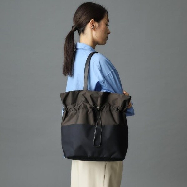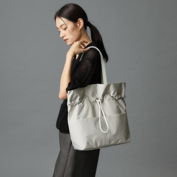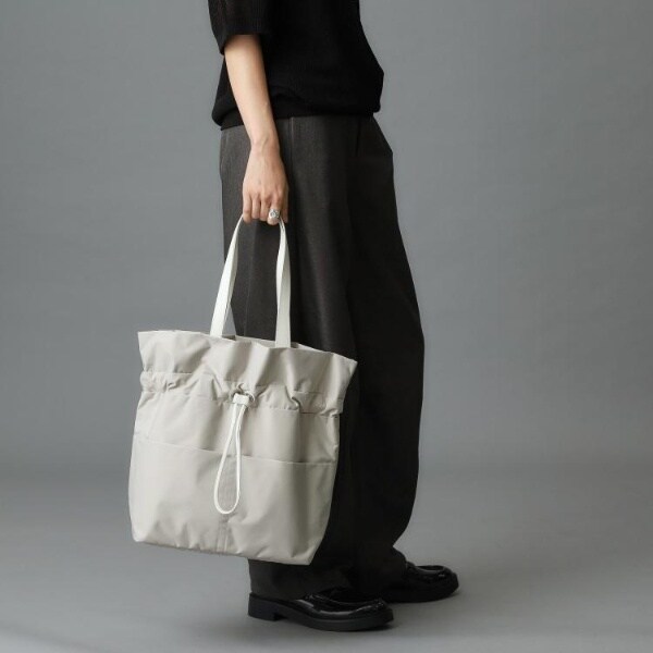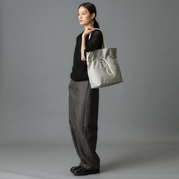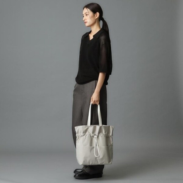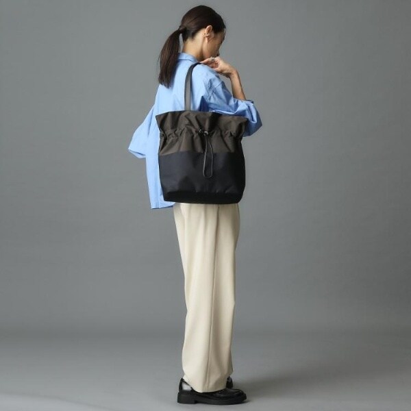 コードを絞ってギャザーを寄せてもよし、そのままでシンプルなトートバッグとしても楽しめます。
