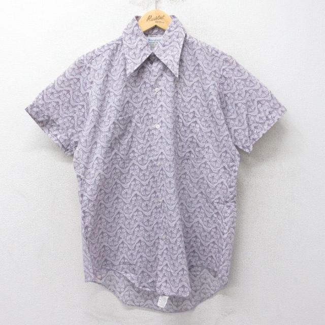 【商品名】 M★古着 半袖 シャツ メンズ 70年代 70s 総柄 紫