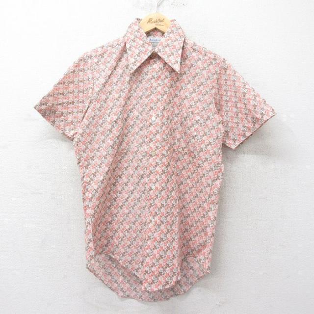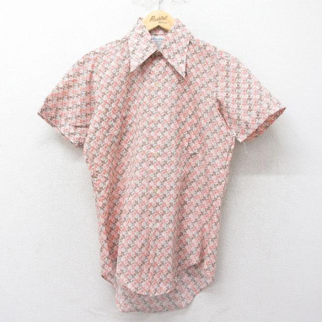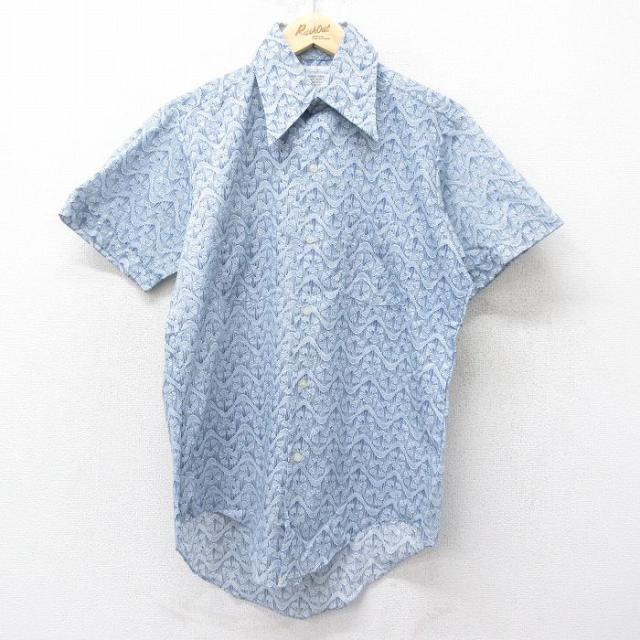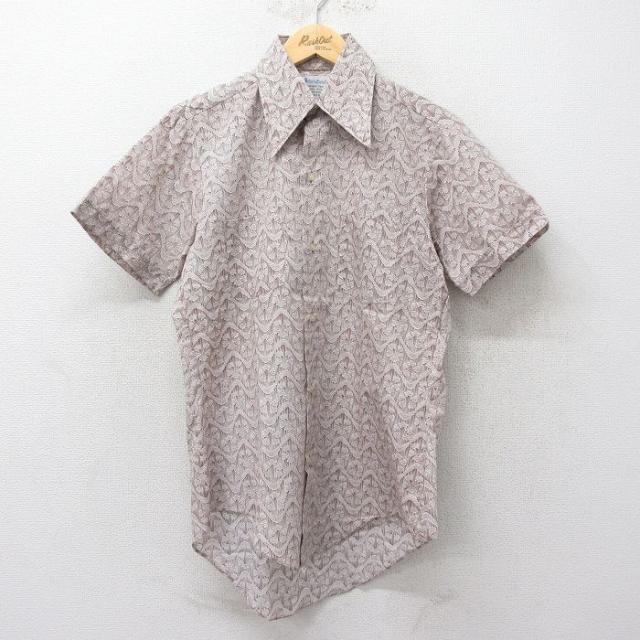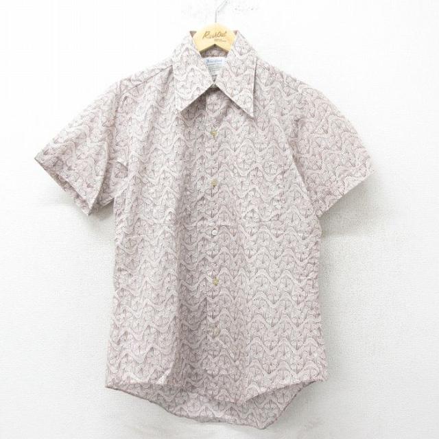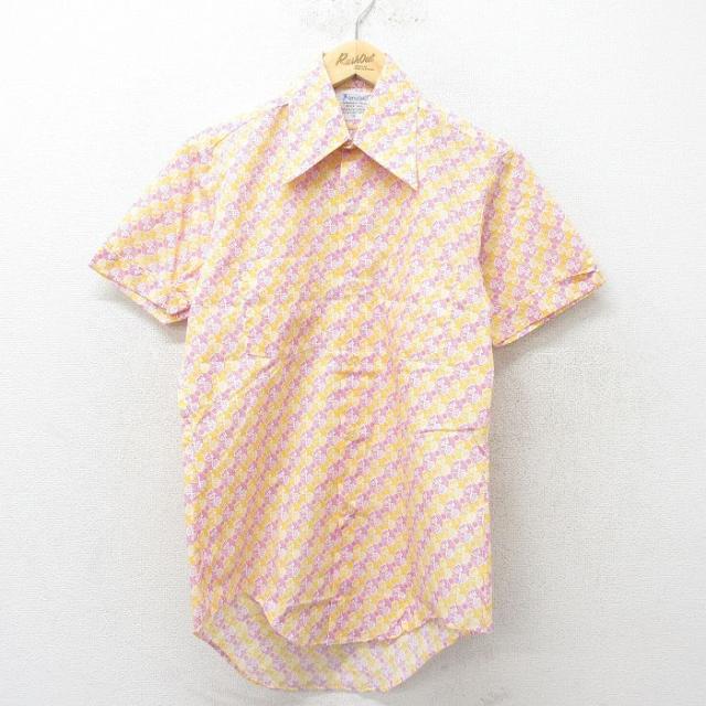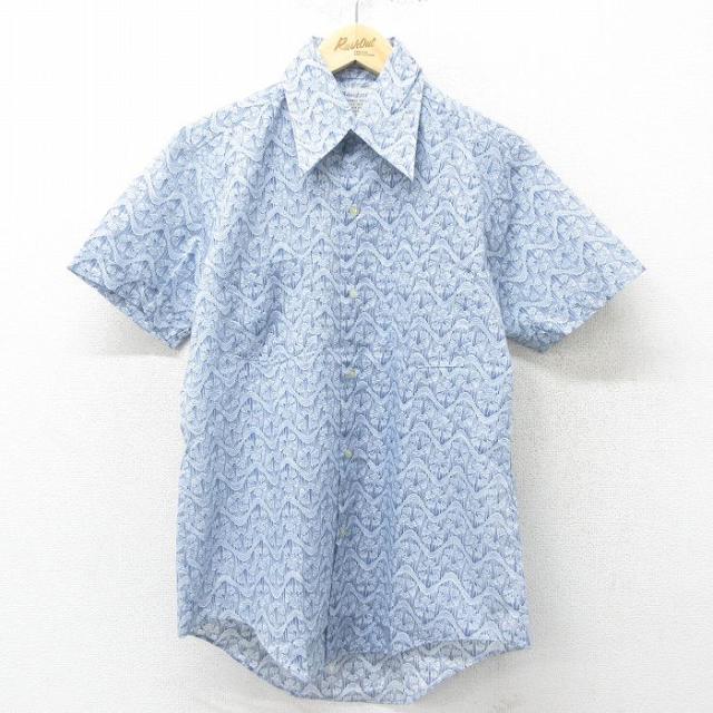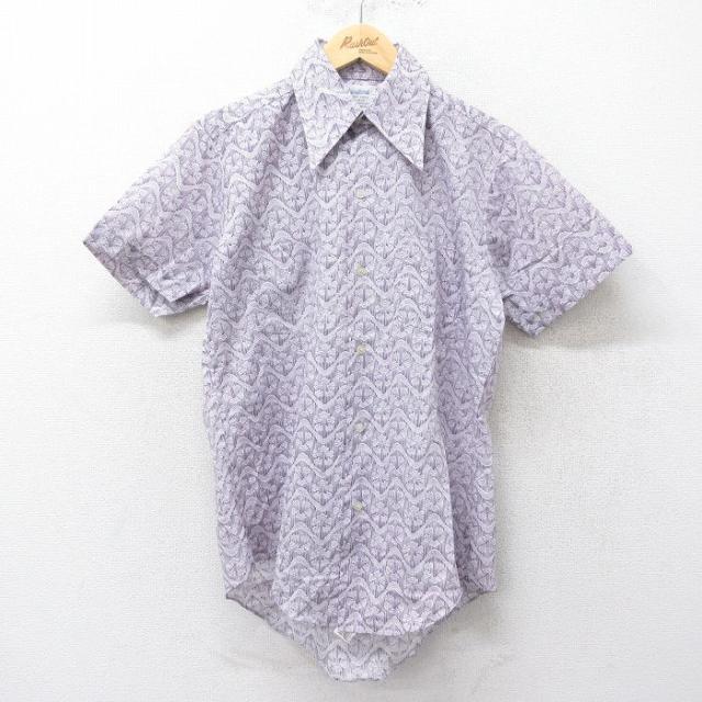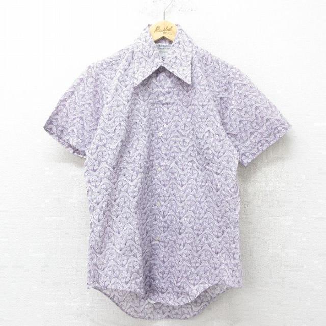 古着 半袖 シャツ メンズ 70年代 70s 総柄 紫 パープル Mサイズ 中古 トップス 中古 古着