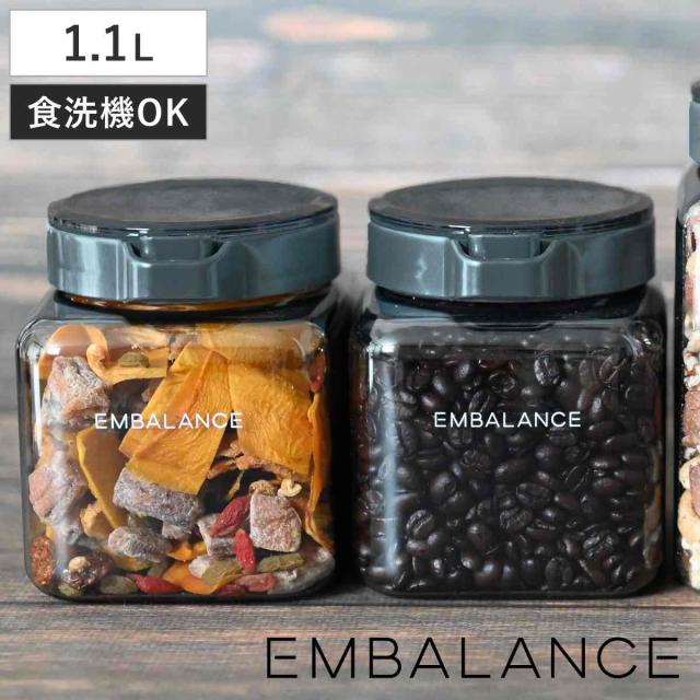 EMBALANCE 保存容器 1.1L プッシュアップコンテナ ( エンバランス プラスチック 食洗機対応 冷蔵 密閉 鮮度保持 1100ml 日本製 BPAフリー UVカット キャニスター コンテナ 調味料 ワンタッチ シンク下 引き出し おしゃれ )