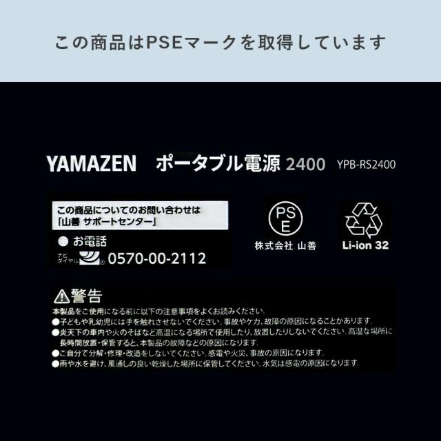 ポータブル電源 リン酸鉄 ポタ電 2400W 大容量 1792Wh 1時間50分フル充電 家庭用 アウトドア用 災害 防災 YPB-RS2400 発電機 蓄電池 家庭用 非常用 車中泊 キャンプ アウトドア 山善 YAMAZEN エレイン ELEIN 【送料無料】