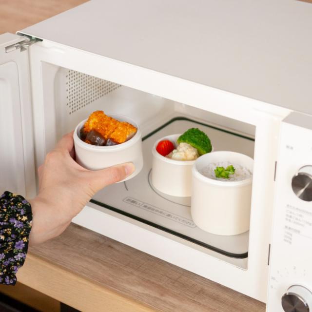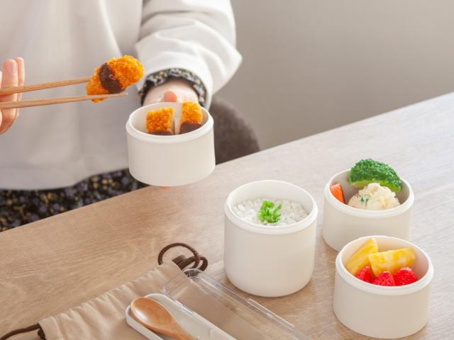 小分けのお弁当箱なので、盛り付けに悩むことも少なく、おかずを詰めていくだけで完成します。味うつりの心配もありません。時間の少ない毎朝のお弁当作りがラクにできます。また、体調やメニューに合わせて自由に段数を調整できるのが魅力です。