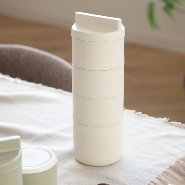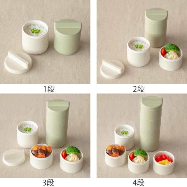 1段から4段まで自由に組み替えができ、その日のお弁当の量によって、サイズ(段数)を変更できます。4段の760mlは学生さんや男性、しっかり食べたい方にオススメです。3段の600mlは女性にちょうど良いサイズです。少食の方や小さいお子さまの場合は2段に減らして調節することができます。