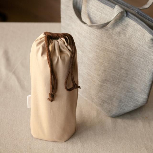 縦型だからボトルと一緒にカバンの中にスッと収まり取り出しやすいです。別売りの巾着袋に入れれば持ち運びもラクラクです。