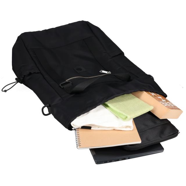 撥水加工を施したナイロンツイル素材を使用したカーハートのオトリーバックパック。パッド入りの裏地を備え、メインコンパートメントは巾着で開閉することができ、内側にはジップポケット、外側には大きなジップポケットとサイドポケットが2つ、トップハンドルと調節できる取り外し可能な2本のバックストラップが付属します。