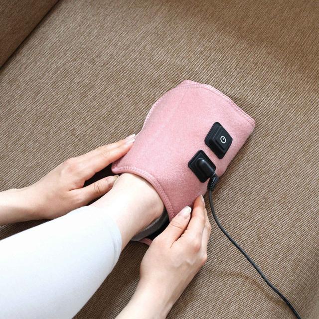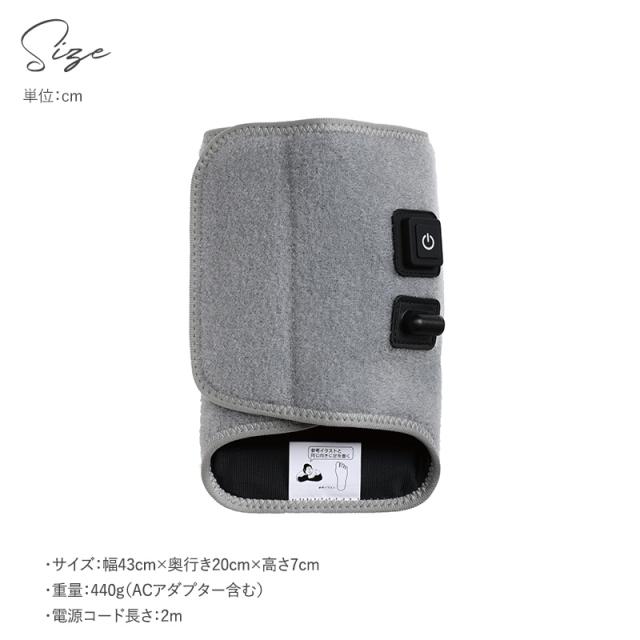 面ファスナーなので足に巻くだけの簡単装着。ボタンひとつで電源オンオフ/強さ調整の操作が可能。どなたでも簡単に心地よくお使いいただけます。
