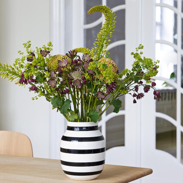 KAHLER(ケーラー)ブランドのアイコン的存在「Omaggio」のフラワーベースH20cmです。陶器のベースの模様は職人によるハンドペイントで作られており、モダンなデザインの中に、ケーラーが長い歴史の中で大切にしてきたクラフトマンシップがしっかりと感じられます。